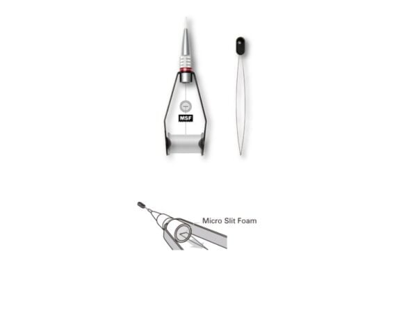 Clever Micro Slit Foam design in bobbin nose to retain constant thread tension.
