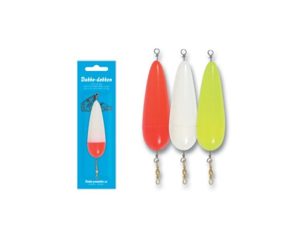 Dabbo Dobben veier ca 10 g og leveres med svivel. Med vann: Ca 25 g. Med sand: Ca 70 g. Kommer i fluoriserende rød, gul, hvit/rød eller helt hvit.