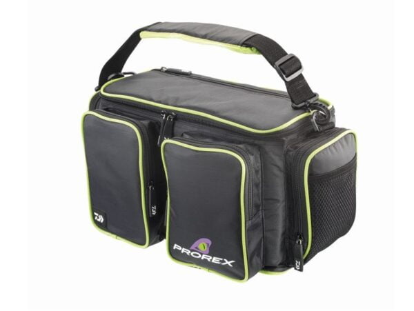 Det store hovedrommet inneholder 3 store bokser med plass til softbait, wobblere, dupper, jigghoder med mer. En liten boks er plassert i en av de mindre lommene, og passer til swivler og annet mindre utstyr.