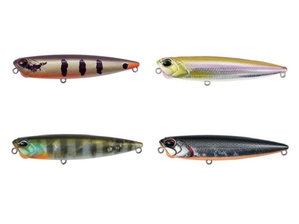 With the original 110mm on the market, which was easily controlled to dog-walk by any angler, we have added a model with more emphasis on the “bite”. In addition to the original characteristics of its castability, action and the sphere protruding from its face to improve the rotational performance, a smaller dog-walking action has been added to its values. It will not only be effective in searching a vast area, but will also produce you results in high pressure fields where a tighter approach is required. With the side-to-side dog-walking action inherited from the 110, the pencil 85 will produce a tighter action compared to its predecessor.