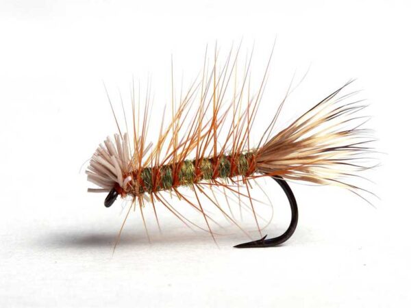 Dyret er Gunnar Bingen’s imitasjon av en vårflue, et populært mønster som både fiskes som voksen vårflue og svømmende puppe. Utover i Juli og August er tiden for svømmepupper og dyret er et mer velflytende alternativ til Superpuppan med sin hale og krage av hjortehår. Impregner hele flua med gel-impregnering.