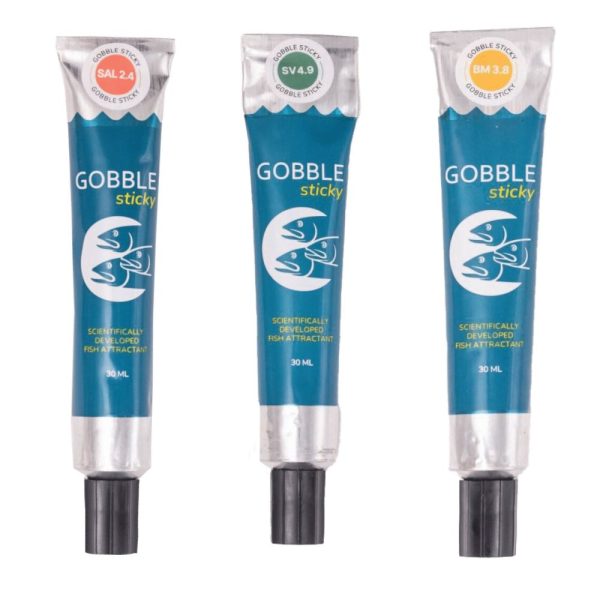 Gobble Sticky er en klebrig krem som kan brukes på alle typer sluker, pilker, wobblere og jigger. Den sitter godt på overflater som metall, plast og gummi. Kremen holder fra 10-30 kast, og opptil en time og ofte lengre på agn som fiskes statisk. Gobble Sticky tilfører lukt og smak som stimulerer fisken til å nappe, uten at den spytter kunstagnet ut igjen. Kan også brukes til å marinere naturlige agn og gummishader før fisk. Gobble Sticky er utviklet og produsert i Norge, av 100 prosent biologisk nedbrytbart materiale.