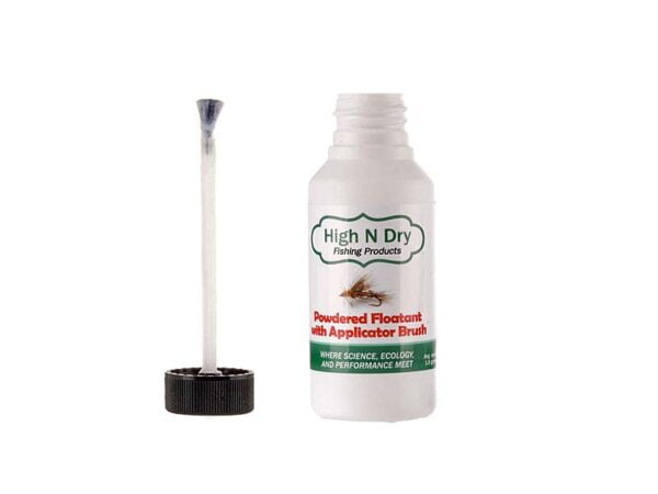 Med High and Dry Powdered Floatant with Brush legger du enkelt på et tynt fint lag med vannavisende partikler på tørrflua. Pulver impregnering er I første rekke et må ha produkt for revitalisering av flua, men kan også med fordel brukes som hovedimpregnering på fluer som skal flyte høyt samt når du ønsker å tilføre impregnering på kun et begrenset område. F.eks på en klekker med flottør av CDC. Pulveret fra HND er så finkornet at det nesten er usynlig! En avansert komposisjon som bruker nanopartikkelteknologi i forbindelse med hydrofob (vannhatende) kjemi for kompromissløse egenskaper. Dette pulveret er laget for å ikke klumpe seg og overfylle børsten med flytemiddel.