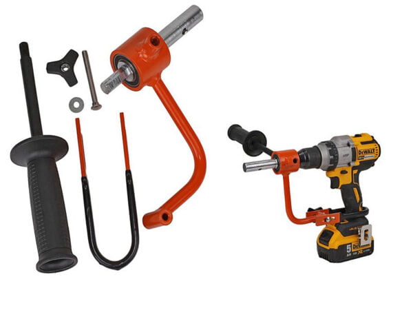 Adapter som passer de fleste batteridriller. Håndtaket kan flyttes og benyttes av både venstre og høyrehendte.