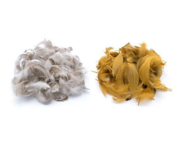 Stor pakke med fjær i alle størrelser. Her finner du fjær til nymfehaler, tørrfluevinger, speyhackle eller vinger til streamere.