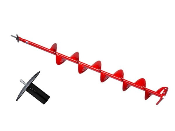Ice Easy Red spiral med drilladapter for bruk med drill. Leveres med 215mm plate som forhindrer boret i å falle gjennom hullet hvis det skulle løsne fra drillen. 125mm bor-diameter. Maks istykkelse 100cm. Forlenger tilgjengelig. Transportlengde 104cm. Vekt 1,95kg.
