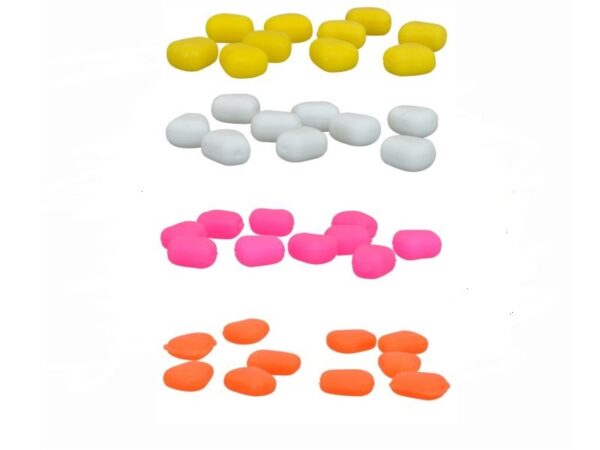 Perfect fake corn kernels in 4 colours. Each grain has enough buoyancy to pop up a boilie. Fish them on a stack for a great standalone hookbait or as a topper on a boilie. Doubles as a soft boilie stop securely locking your bait on the hair.
