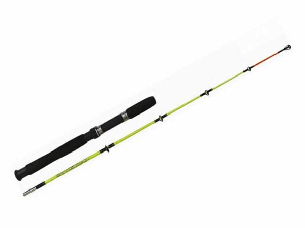 Enkel meget populær ismeitestang i glassfiber til gjeddefiske. 120cm lang 2-delt. Vekt ca 190 gram.
