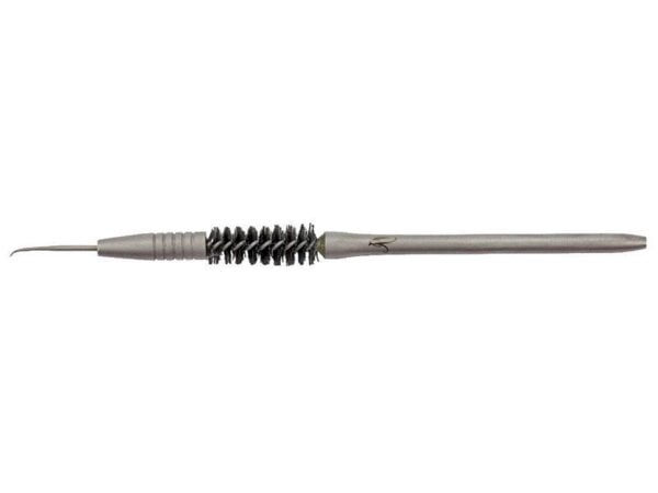 Dubbingnål med vinkel for delikate arbeidsoppgaver. Sluttknuteverktøy og dubbingbørste medium styrke for de fleste type fluer.