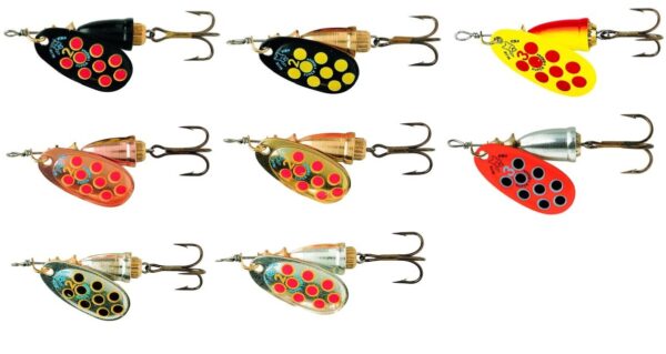 Hot Pepper er tradisjonelle Vibrax-spinnere med prikker. Disse er malt i to sjikt, og virker derfor ekstra forlokkende.