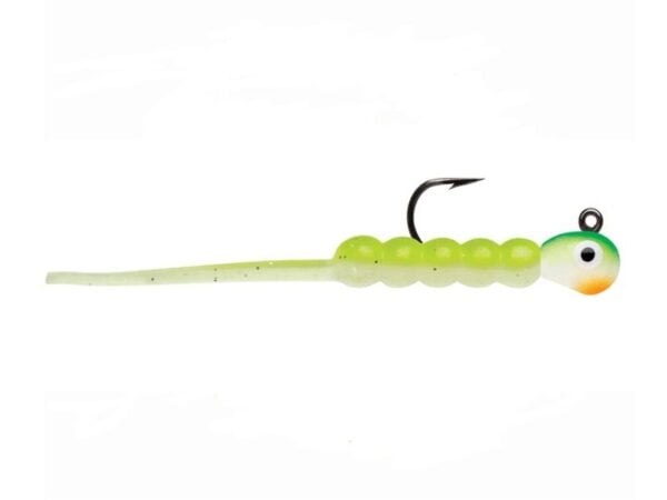 Jiggen er forsterket med Ultra Glow pigmenter som lyser opptil 15 minutter pr. ladning. Lades ved sollys eller med lykt. 90° krokøye for vannrett presentasjon og VMC Power Gap krok for sikker kroking av fisken.