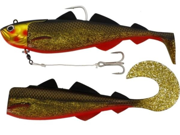When the big halibut and huge cod are proving tricky and hard to tempt, give daisy a little jig and your chances will seriously pick up. She has insanely sexy movement and swimming pattern – even fished slowly – based on juvenile saithe – the favourite fish supper for the big trophy specimens hunting the seas and shores around Norway. We’ve included a mega-strong stinger hook rig and two different bodies – the curltail for a smooth, wormlike swimming action (even at the slowest speed) – and the paddletail for that «take-me-now» wounded-panicky-fish-action. We’ve spent years testing and perfecting the movement, trying out every possible change in shape, size and weight distribution. The experienced guides from nordic sea angling who tested it now think we’ve succeeded – and some scarily big fish agree!